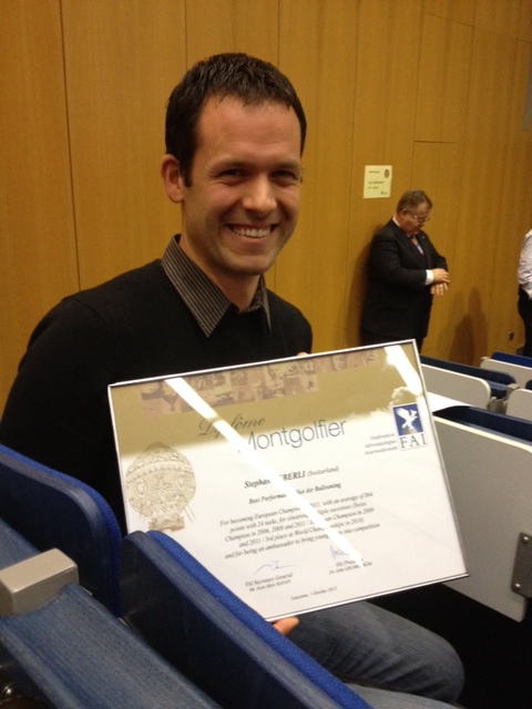 Herzliche Gratulation unserem Mitglied Stefan Zeberli. Für seine Erfolge in der Heissluftballon-Wettfahrt wurde ihm das Diplôme Montgolfier überreicht.